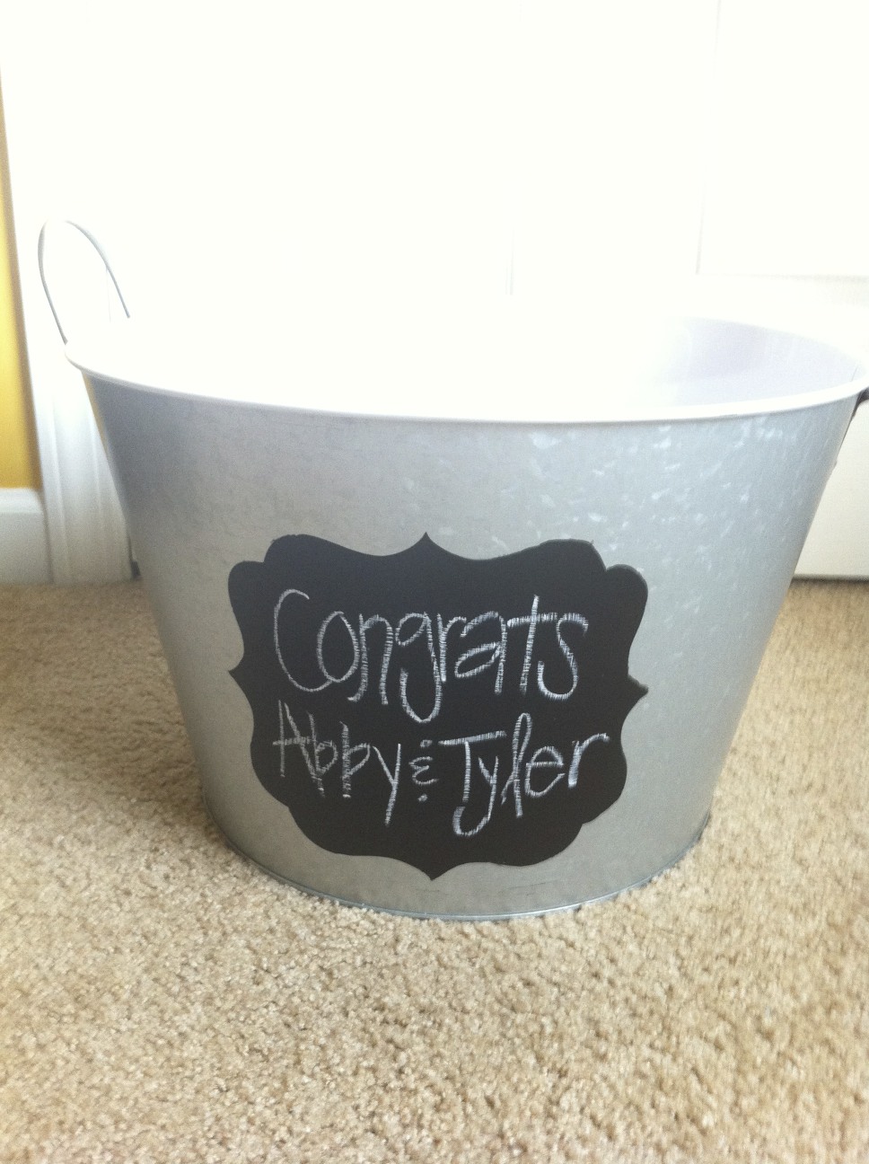 After I made this for my friend, I resisted the urge to go get another tin for myself. I already have a lime green beverage dispenser… but I loved the simple tin color with the chalkboard! Simple and classic, don't ya think?